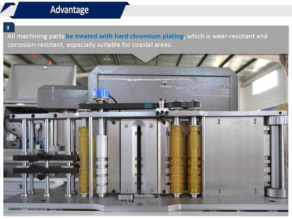 3、機(jī)器內(nèi)部的加工件和板材全部鍍硬鉻處理,耐磨 耐腐蝕,特別適合東南亞等沿海地區(qū)。