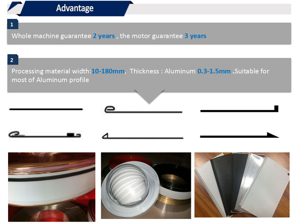 整機(jī)特點(diǎn)1、整機(jī)質(zhì)保兩年,電機(jī)三年。(不包括皮帶,不銹鋼切割刀頭,感應(yīng)開(kāi)關(guān)和繼電器)2、加工材料高度10-160mm , 鋁板厚度0.3-1.5mm3、機(jī)器內(nèi)部的加工件和板材全部鍍硬鉻...